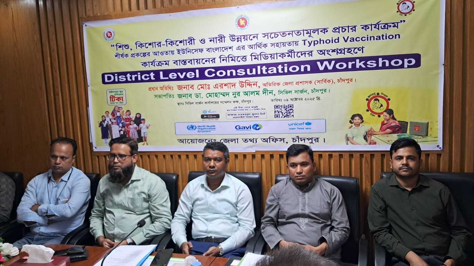 নিজস্ব প্রতিনিধি ॥ চাঁদপুরে ‘শিশু, কিশোর-কিশোরী ও নারী উন্নয়ন সচেতনতামূলক প্রচার কার্যক্রম’ শীর্ষক প্রকল্পের আওতায় ইউনিসেফ বাংলাদেশ এর আর্থিক সহায়তায় টাইফয়েড ভ্যাকসিনেশন কার্যক্রম বাস্তবায়নের নিমিত্তে মিডিয়াকর্মীদের অংশগ্রহনে জেলা পর্যায়ে পরামর্শ সভা অনুষ্ঠিত হয়েছে। জেলায় এই টিকা প্রদানে টার্গেট শিশুর সংখ্যা ৮লাখ ৫হাজার ২শ’ ৪৫জন।