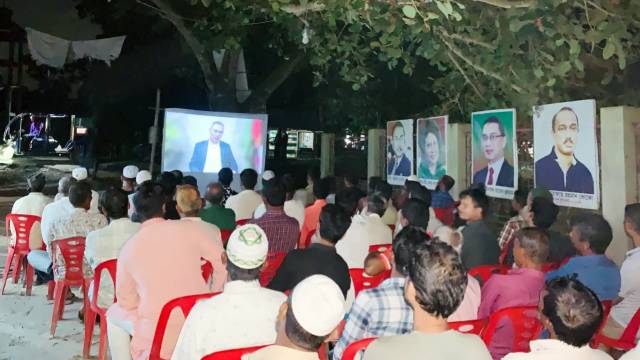 চরমাছুয়া ৯নং ওয়ার্ড বিএনপি কার্যালয়ের সামনে প্রজেক্টরের মাধ্যমে প্রদর্শনীতে শত শত সাধারণ জনগণ ও দলীয় নেতৃবৃন্দ উপস্থিত ছিলেন।