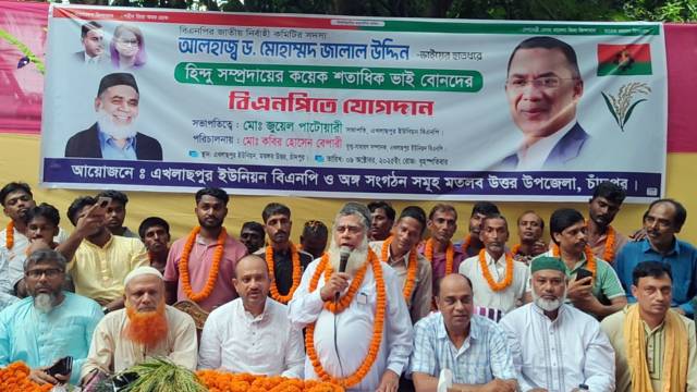 তলব উত্তর প্রতিনিধি :বিএনপির জাতীয় নির্বাহী কমিটির সদস্য হাজ্ব ড. মোহাম্মদ জালাল উদ্দিন বলেছেন, বাংলাদেশের মানুষ বুঝতে পেরেছে বিএনপি ছাড়া এদেশের উন্নয়ন সম্ভব নয়। একমাত্র বিএনপি ক্ষমতায় আসলেই রাষ্ট্র কাঠামো উন্নত হবে। তাই মানুষ আগামী নির্বাচনে বিএনপিকেই ভোট দিয়ে ক্ষমতায় আনবে। বৃহস্পতিবার বিকালে মতলব উত্তর উপজেলার এখলাছপুরে হিন্দু সম্প্রদায়ের মানুষ বিএনপিতে যোগদান অনুষ্ঠানে প্রধান অতিথির বক্তব্যে এসব কথা বলেন তিনি। এখলাছপুর ইউনিয়ন বিএনপি ও অঙ্গ সহযোগী সংগঠনের কর্তৃক অনুষ্ঠানটি আয়োজন করা হয়। এসময় শতাধিক হিন্দু সম্প্রদায়ের মানুষ ড. জলাল উদ্দিনের হাত ধরে বিএনপিতে যোগদান করেন।