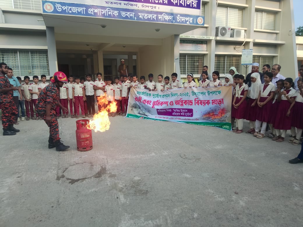 বিশেষ অতিথি হিসেবে উপস্থিত ছিলেন সহকারী কমিশনার (ভূমি) মুমতাহিনা পৃথুলা, উপজেলা স্বাস্থ্য ও পরিবার পরিকল্পনা কর্মকর্তা ডাঃ গোলাম রায়হান, কৃষি কর্মকর্তা চৈতন্য পাল, প্রকল্প বাস্তবায়ন কর্মকর্তা আনোয়ারুল ইসলাম প্রমুখ।মতলব দক্ষিণ উপজেলা ফায়ার সার্ভিস ও সিভিল ডিফেন্স কার্যালয়ের চৌকস ফায়ার ফাইটারদের অংশগ্রহণে অগ্নি নির্বাপনের মহড়ায় মতলব মডেল সরকারি প্রাথমিক বিদ্যালয়ের শিক্ষার্থীরা অংশগ্রহণ করে। উল্লেখ্য যে, ১৯৮৯ সাল থেকে প্রতি বছর ১৩ অক্টোবর বিশ্বব্যাপী এ দিবসটি পালিত হয়ে আসছে। দুর্যোগের ঝুঁকি হ্রাসে জনগণের সচেতনতা বৃদ্ধি ও প্রস্তুতি জোরদার করাই দিবসটির উদ্দেশ্য। বিশ্বের অন্যান্য দেশের মতো বাংলাদেশেও নানা কর্মসূচির মধ্য দিয়ে দিবসটি পালিত হচ্ছে।