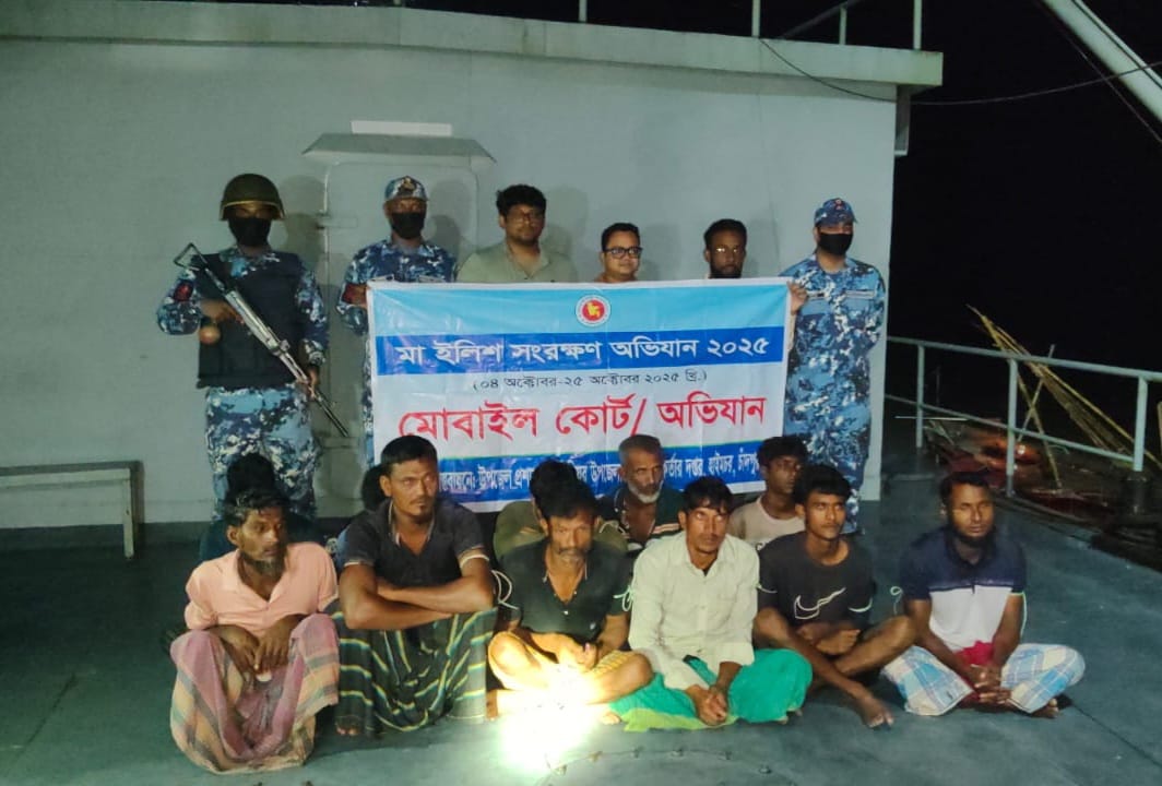 মেঘনায় মা ইলিশ রক্ষা অভিযানে ১১ জেলে আটক, ৮ জনের কারাদণ্ড