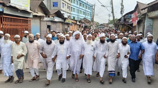 আল্লাহ ও রাসূলকে নিয়ে কটুক্তি করায় চাঁদপুরের পুরাণবাজারে বিক্ষোভ মিছিল