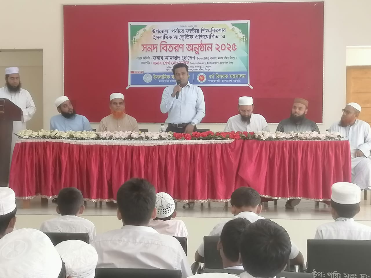 তাছকিন আহমেদ দিপুঃ মতলব দক্ষিণে উপজেলা পর্যায়ে জাতীয় শিশু কিশোর ইসলামিক প্রতিযোগিতায় সাংস্কৃতিক অনুষ্ঠান ১৩ নভেম্বর দুপুর ১ টার সময় সূরা কেরাতের মধ্য দিয়ে অনুষ্ঠানটি শুরু হয় প্রধান অতিথি হিসেবে উপস্থিত মতলব দক্ষিণ উপজেলা নির্বাহী কর্মকর্তা ও পৌর প্রশাসক আমজাদ হোসেন