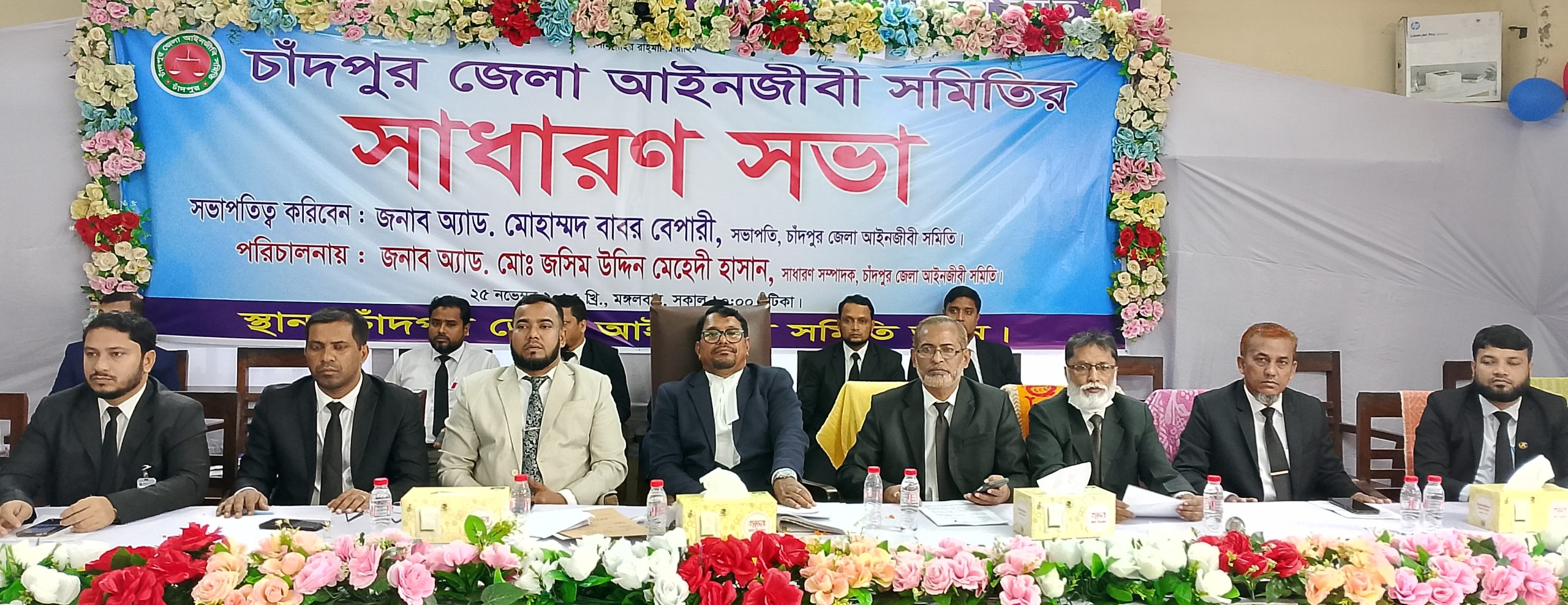 স্টাফ রিপোটার: চাঁদপুর জেলা আইনজীবী সমিতির সাধারন সভা অনুষ্ঠিত হয়েছে। মঙ্গলবার ২৫শে নভেম্বর ২০২৫ দুপুরে জেলা আইনজীবী সমিতি মিলনায়তনে সভায় সসভাপতিত্ব করেন সমিতির সভাপতি অ্যাড. মোহাম্মদ বাবর বেপারী।