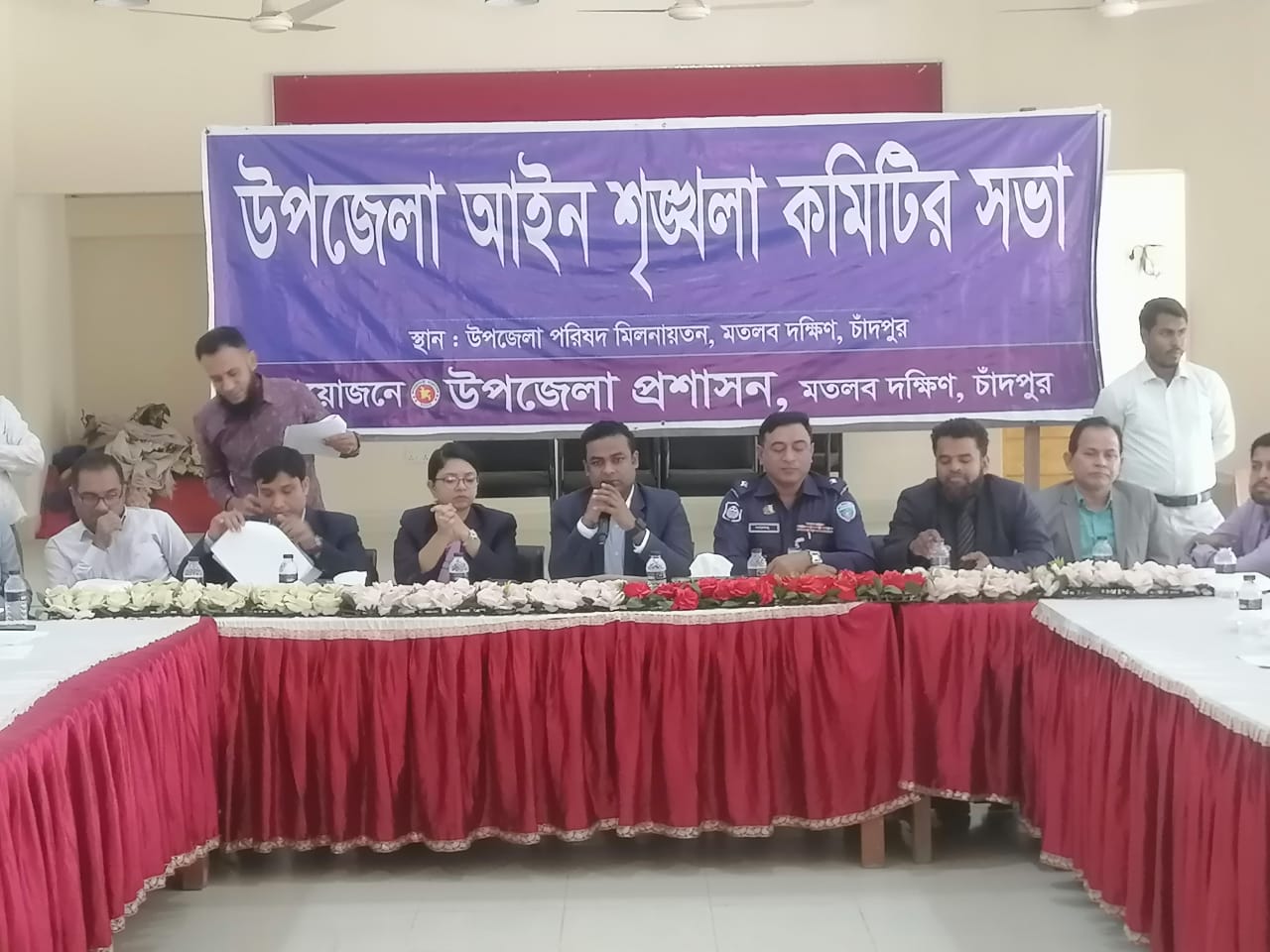 মতলব দক্ষিণ উপজেলা আইনশৃঙ্খলা কমিটির মাসিক সভা অনুষ্ঠিত হয়। রবিবার সকাল দশটায় ৩০ ই নভেম্বর উক্ত সভায় সভাপতিত্ব করেন মতলব দক্ষিণ উপজেলা নির্বাহী অফিসার ও পৌর প্রশাসক আমজাদ হোসেন বলেন ,