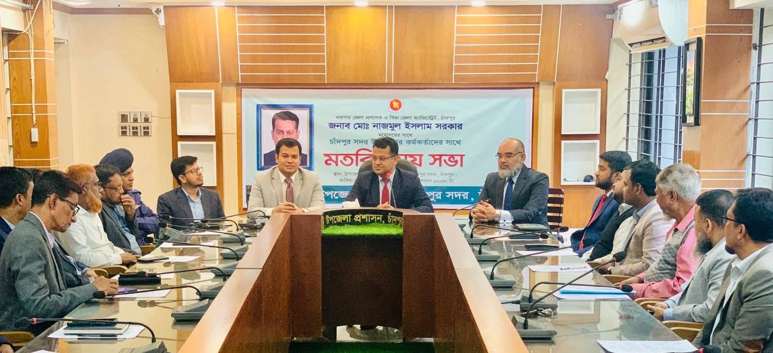 নিজস্ব প্রতিনিধি:চাঁদপুর সদর উপজেলা পরিষদের কর্মকর্তাদের সাথে জেলা প্রশাসক মতবিনিময় সভা করেছেন, বৃহস্পিবার সকাল ১০টায় সদর উপজেলা পরিষদের হলরুমে উপজেলা নির্বাহী কর্মকর্তার এস এম এন জামিউল হিকমার সভাপতিত্বে প্রধান অতিথি হিসেবে বক্তব্য রাখেন চাঁদপুর জেলা প্রশাসক মোঃ নাজমুল ইসলাম সরকার।