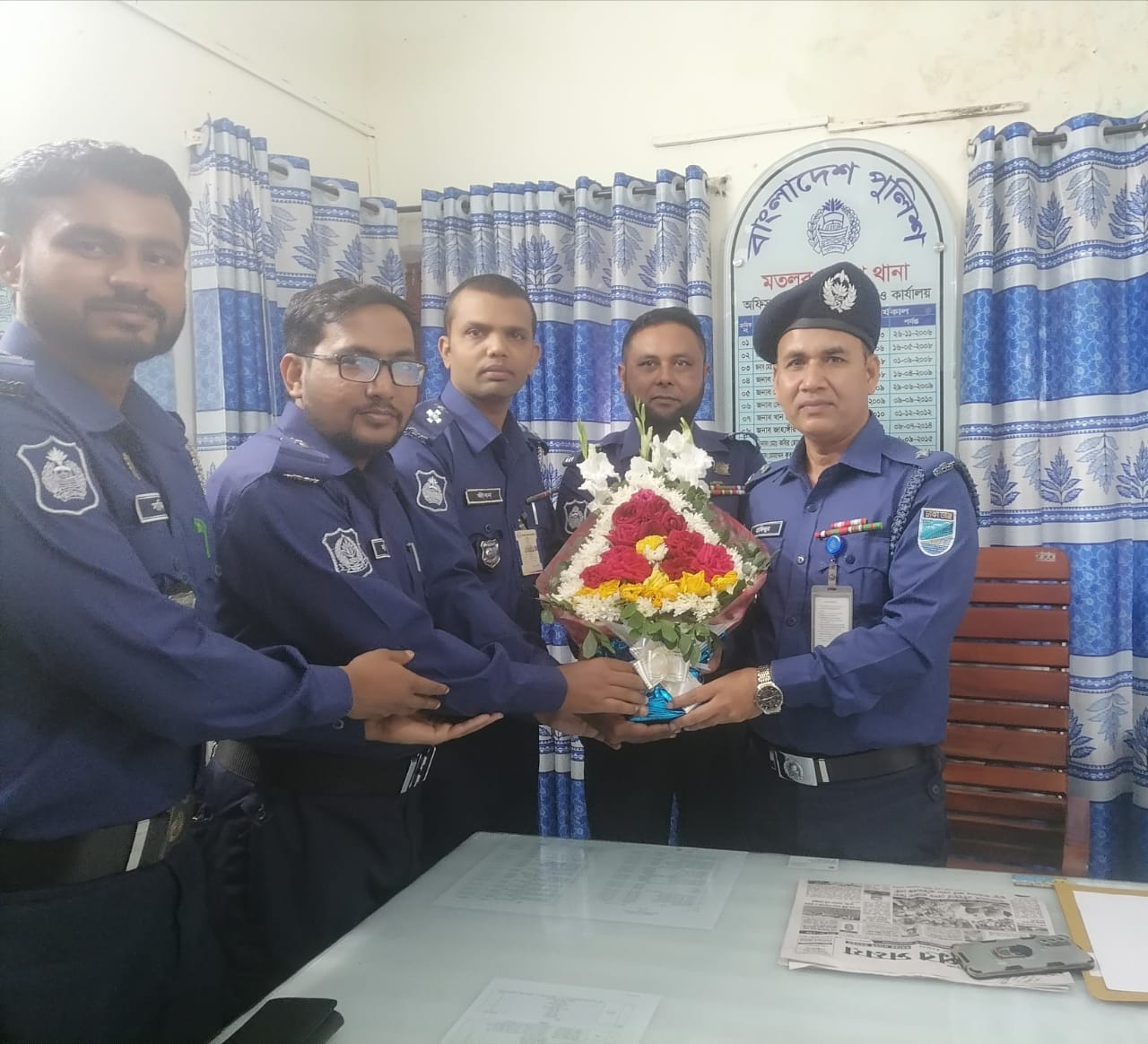 ইন্সপেক্টর মহিনউদ্দিন ফুলের শুভেচ্ছা জানান ,
