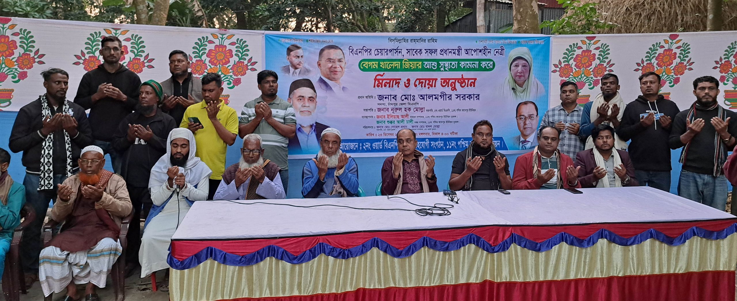 সাবেক প্রধানমন্ত্রী ও বিএনপির চেয়ারপার্সন বেগম খালেদা জিয়ার সুস্থতা কামনায় মতলব উত্তর উপজেলার ফতেপুর পশ্চিম ইউনিয়নে ২নং ওয়ার্ডে মিলাদ ও দোয়া অনুষ্ঠিত হয়েছে। মঙ্গলবার বিকালে পশ্চিম নাউরী গ্রামে ইউনিয়ন যুবদলের সাধারণ সম্পাদক এম ইলিয়াছ আলীর বাড়ির সামনের মাঠে এ দোয়া আয়োজন করেন ২নং ওয়ার্ড বিএনপি অঙ্গ সহযোগী সংগঠনের নেতৃবৃন্দ।