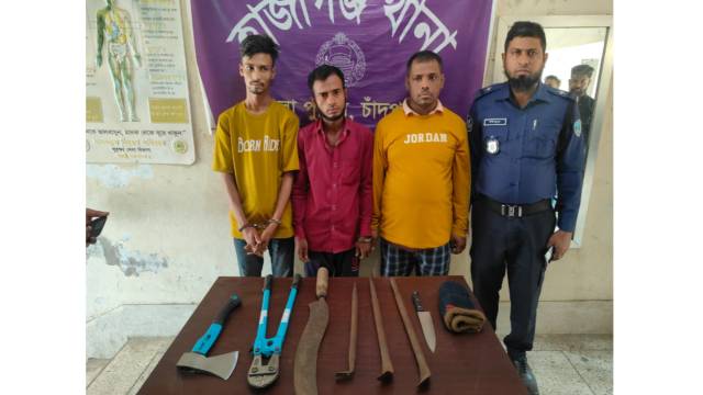 পুলিশ জানায় আটককৃতদের কাছ থেকে একটি ধারালো রামদা, একটি চাপাতি, একটি দেশীয় তৈরি ছুরি, তিনটি লোহার রড, একটি লোহার কাটার, একটি শাবল, পাঁচটি ব্লেড, তিনটি কালো মাস্ক এবং তিনটি গামছা উদ্ধার করা হয়েছে। এছাড়া ডাকাতির কাজে ব্যবহারের জন্য আনা একটি নীল রঙের TATA ব্র্যান্ডের পিকআপ ভ্যানও জব্দ করা হয়েছে।