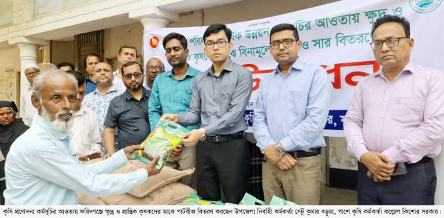 বৃহষ্পতিবার (২ এপ্রিল ২০২৬) চলতি অর্থবছরে খরিপ-১ মৌসুমে কৃষি প্রণোদনা কর্মসূচির আওতায় আবাদ ও উৎপাদন বৃদ্ধির লক্ষ্যে ক্ষুদ্র ও প্রান্তিক কৃষকদের মাঝে বিনামূল্যে ৩৫০ জন কৃষকের মাঝে আউশ ধান ও পাটের বীজ ও সার এবং উপজেলা পরিষদের অর্থায়নে ২০০ জন কৃষকের মাঝে বিনামূল্যে পাটের বীজ ও সার বিতরণ করা হয়।