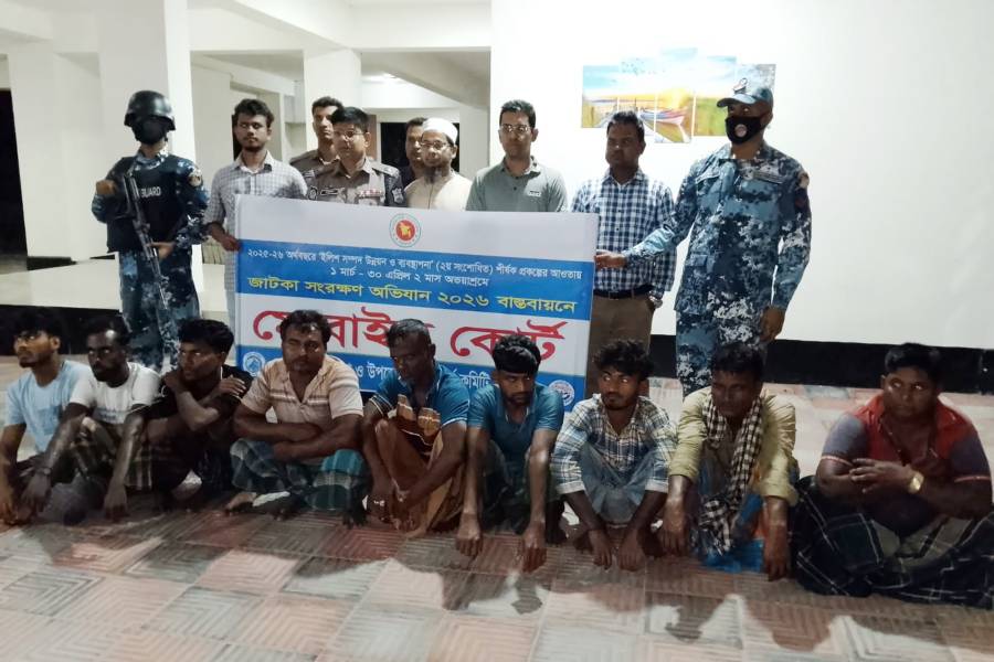 মেঘনায় নিষেধাজ্ঞা অমান্য করে মাছ ধরায় ৯ জেলের কারাদন্ড