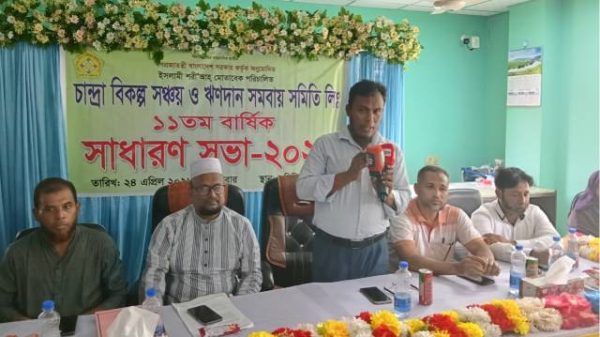 চাঁদপুর জেলার ফরিদগঞ্জ উপজেলা চান্দ্রা বাজারে চান্দ্রা বিকল্প সঞ্চয় ও ঋনদান সমবায় সমিতির লিমিটেড এর প্রধান কার্যালয়ে ১১ তম বার্ষিক সাধারণ সভা অনুষ্ঠিত হয়েছে। শুক্রবার (২৪ এপ্রিল) চান্দ্রা বিকল্প সঞ্চয় ও ঋনদান সমবায় সমিতির লিঃ এর ব্যবস্থাপনা পরিচালক মোহাম্মদ শাহাবুদ্দিন খানের সভাপতিত্বে ও মোঃ মাহফুজুর রহমান এর পরিচালনায় প্রধান অতিথি হিসেবে বক্তব্য রাখেন জেলা সমবায় কর্মকর্তা মোঃ বিল্লাল হোসেন সততা ও আন্তরিক থাকলে আমি মনে করি যে কোন প্রতিষ্ঠান সফলতা অর্জন করবে।
