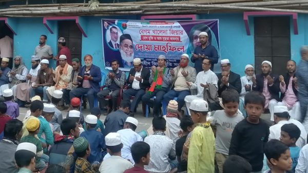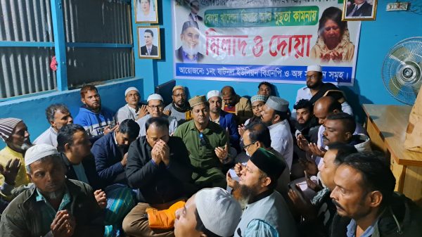 আরাফাত আল-আমিন : সাবেক প্রধানমন্ত্রী বেগম খালেদা জিয়ার সুস্থতা কামনায় মতলব উত্তর উপজেলার ষাটনল ইউনিয়নে ড. জালাল উদ্দিনের নির্দেশনায় উপজেলা শ্রমিক দলের সিনিয়র যুগ্ম সাধারণ সম্পাদক খোকন বেপারীর আয়োজনে মিলাদ