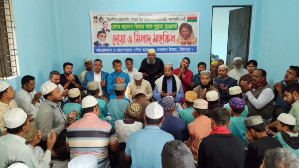আরাফাত আল-আমিন : বিএনপির চেয়ারপার্সন ও সাবেক প্রধানমন্ত্রী বেগম খালেদা জিয়ার রোগ মুক্তি কামনায় চাঁদপুরের মতলব উত্তর উপজেলার ছেংগারচর পৌর ছাত্রদলের উদ্যোগে মিলাদ ও দোয়া অনুষ্ঠিত হয়েছে। বৃহস্পতিবার দুপুরে উপজেলার